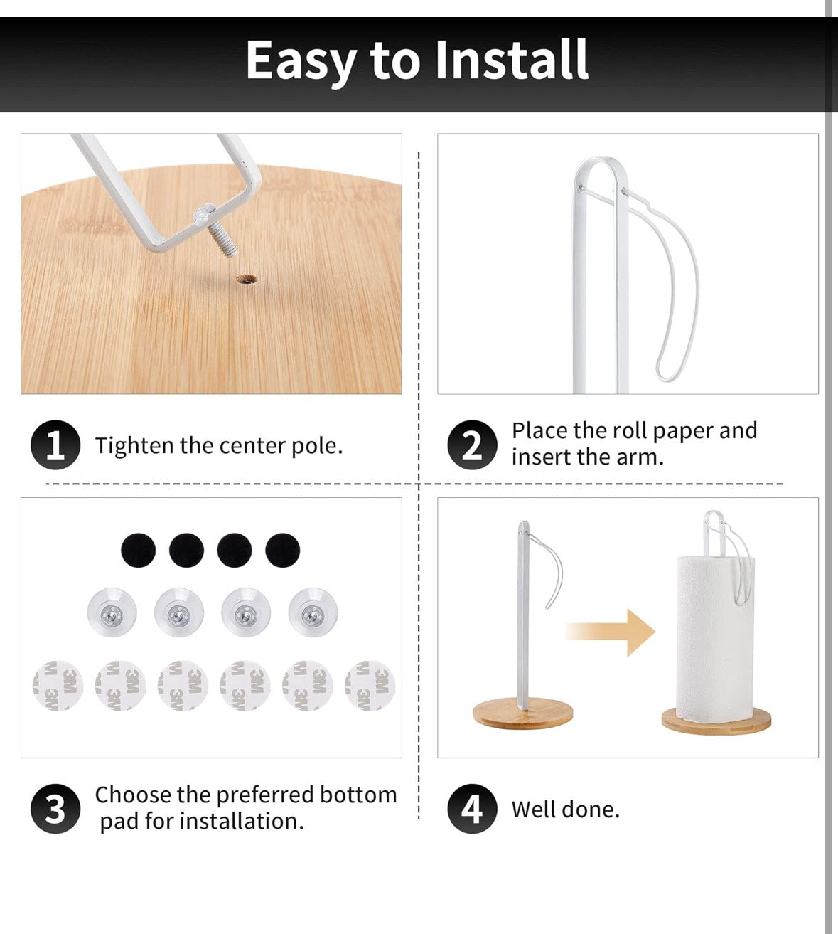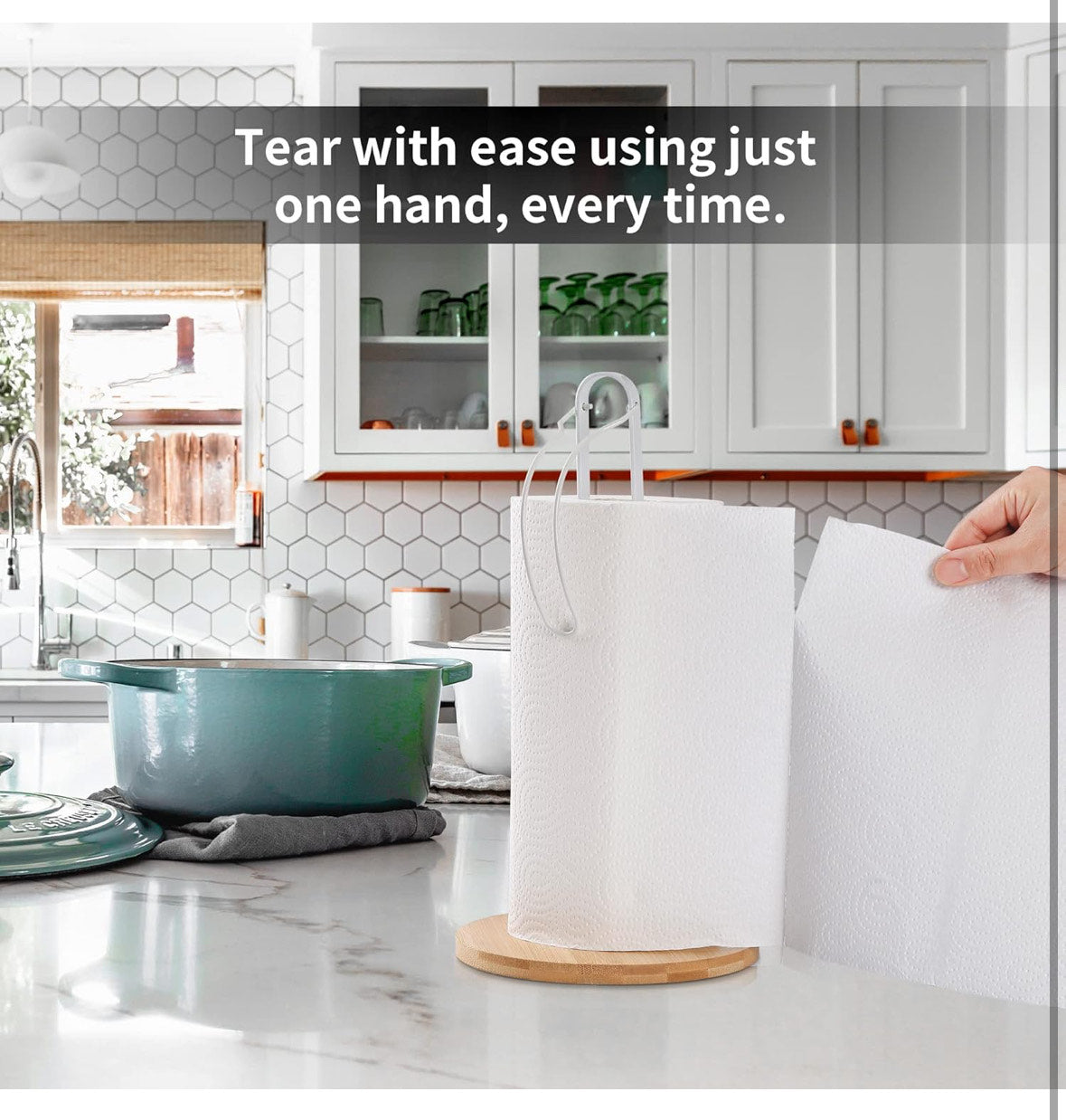 Díky bezpečné protiskluzové základně pevně stojí na jakékoli pracovní ploše a umožňuje snadné použití jednou rukou. Samostatně stojící design nabízí flexibilitu při umístění, zatímco elegantní bílá povrchová úprava skvěle doplňuje širokou škálu kuchyňských dekorací. Ideální pro snadný přístup a organizaci papírových utěrek, tento držák kombinuje odolnost s moderní jednoduchostí – perfektní pro každý domácí prostor.