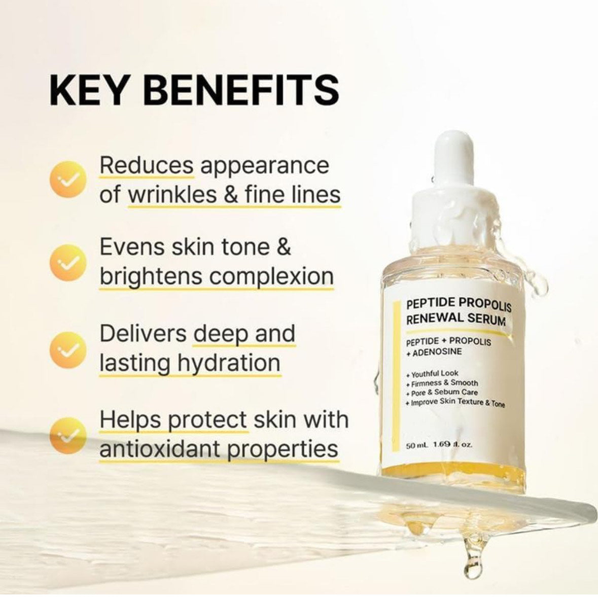 Zažijte mladistvou a zářivou pokožku s hydratačním a obnovujícím sérem proti vráskám od HOYGII. Tato pokročilá korejská formule kombinuje silné peptidy a propolisový komplex pro hlubokou hydrataci, vyhlazení jemných linek a podporu obnovy pokožky. Sérum je vhodné pro všechny typy pleti, poskytuje intenzivní hydrataci a zároveň podporuje pevnější a mladistvější vzhled pleti. Ideální pro každodenní použití, je vaší spolehlivou volbou pro viditelné anti-aging výsledky a dlouhotrvající vitalitu pokožky.