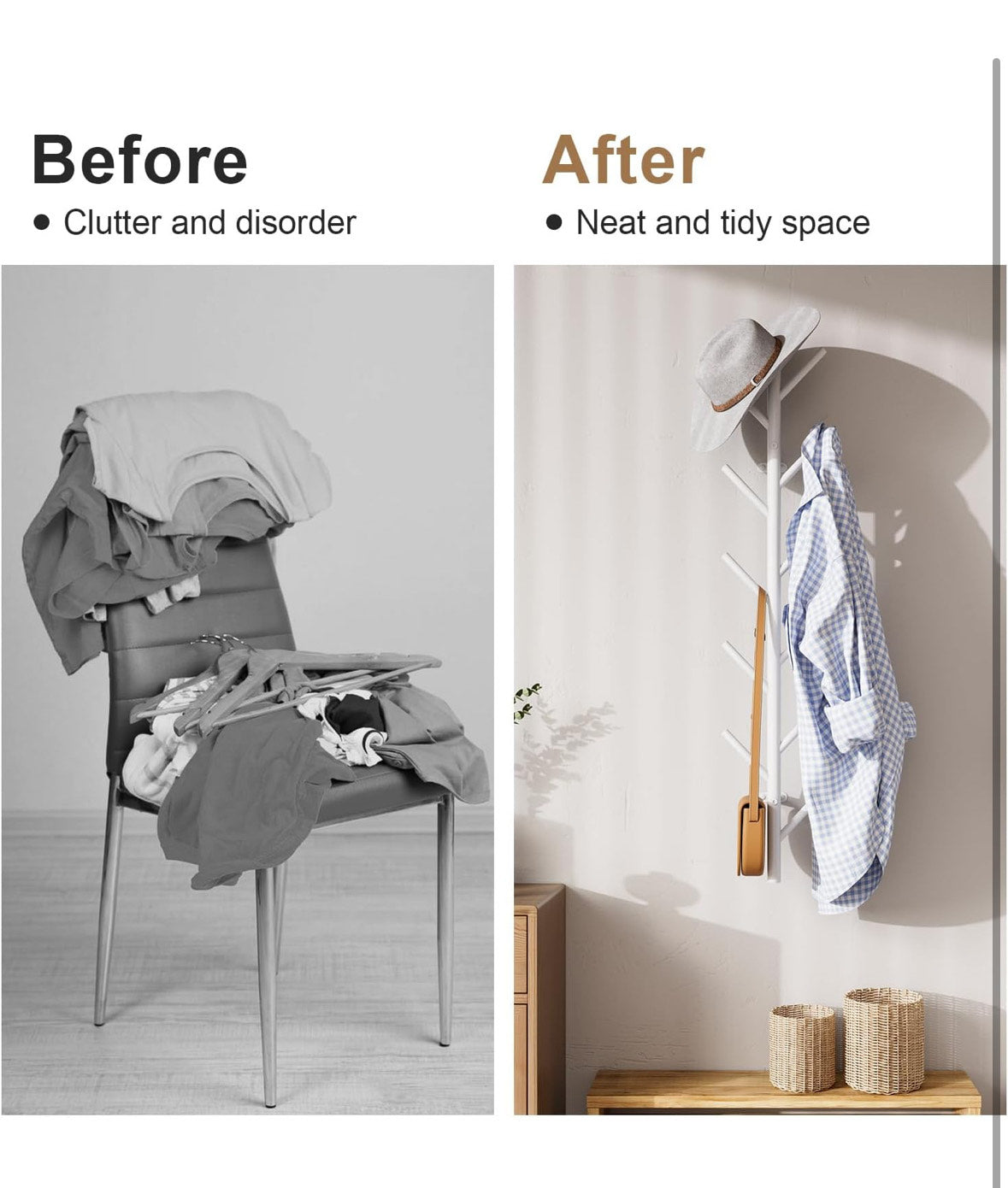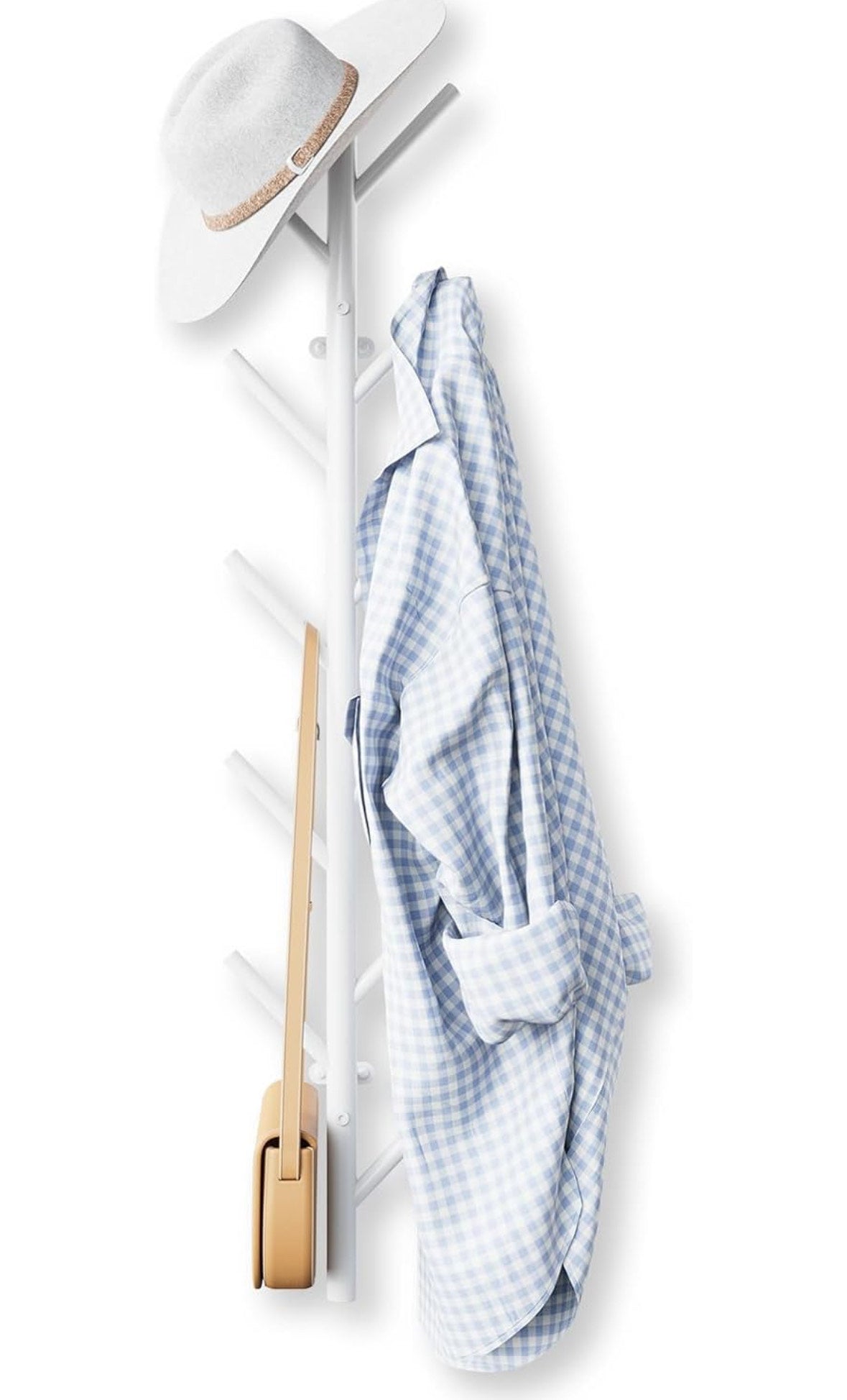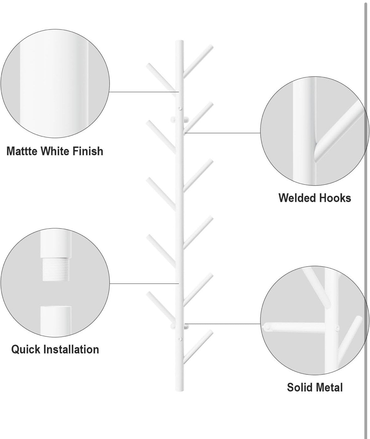 Tento 100 cm vysoký bílý kovový věšák s elegantním a úsporným designem je vybaven 11 pevnými háčky – ideální pro zavěšení bund, kabátů, klobouků, šál, tašek a dalšího.