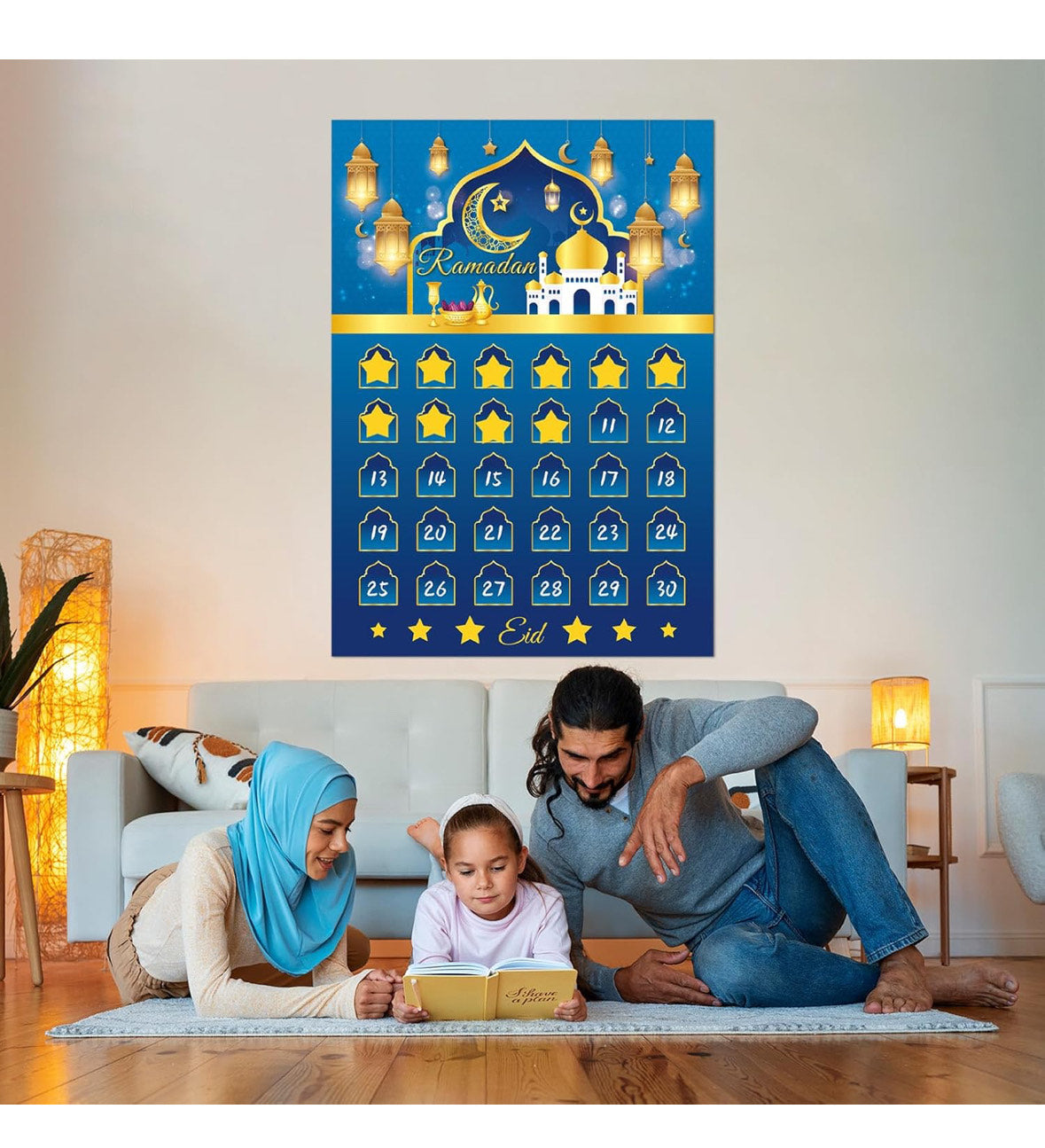 Udělejte Ramadán pro děti nezapomenutelným s tímto krásně navrženým odpočítávacím kalendářem. Obsahuje 48 znovupoužitelných hvězd a nabízí každodenní aktivity, které dětem pomáhají lépe porozumět duchu Ramadánu a svátku Eid. Ideální jako dekorace na zeď do domácnosti – spojuje slavnostní výzdobu s hlubokou tradicí a vytváří zábavný a poučný zážitek z odpočítávání, který si užije celá rodina. Skvělý způsob, jak vnést radost a očekávání do celého posvátného měsíce.