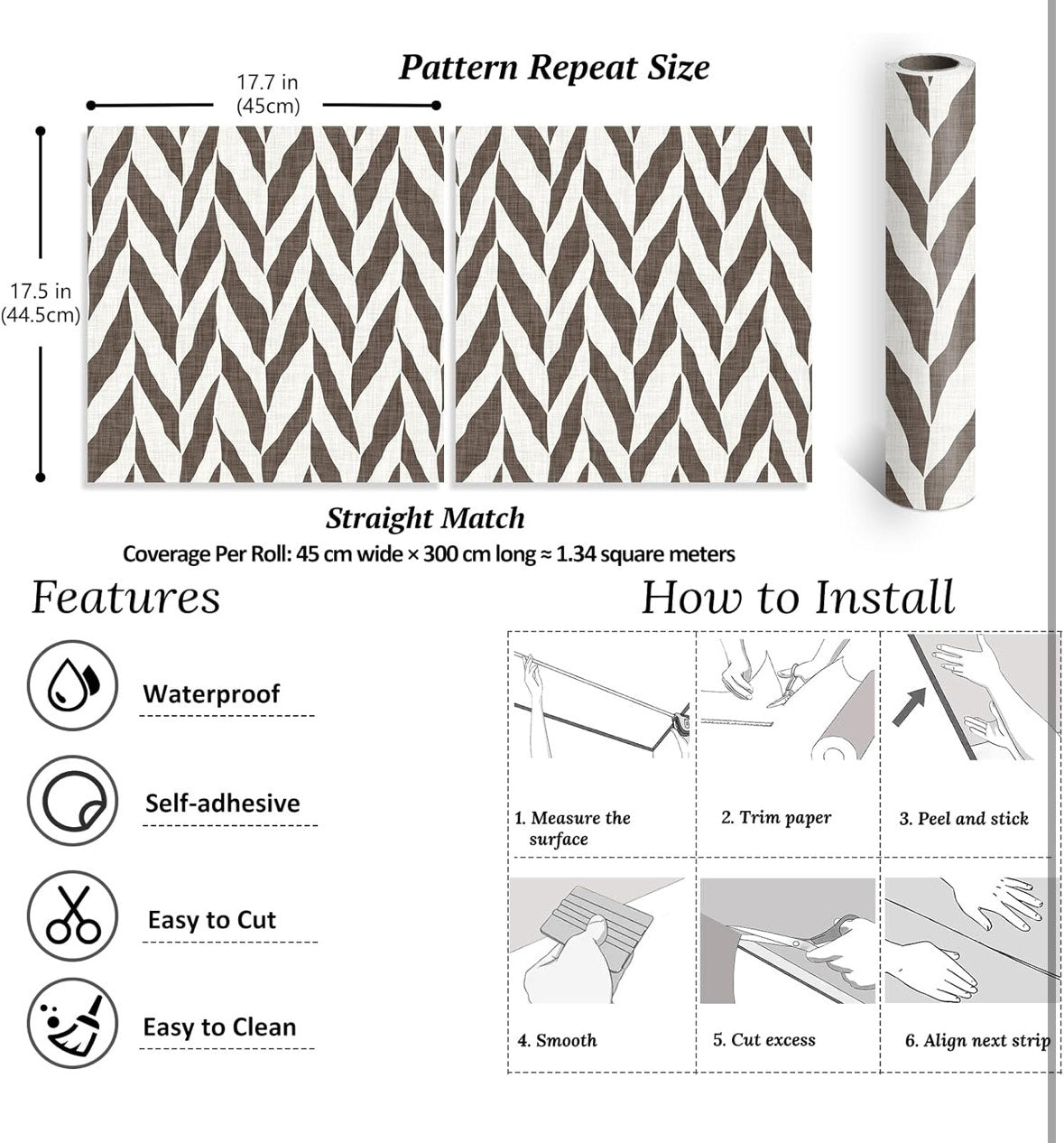 Vyrobena z vysoce kvalitního a odolného materiálu, tato vzorovaná tapeta s lepivou zadní stranou se snadno aplikuje, přemísťuje a odstraňuje – ideální pro DIY projekty i nájemníky. Každá role má rozměry 44,5 cm x 300 cm, což poskytuje dostatečné pokrytí pro různé povrchy.