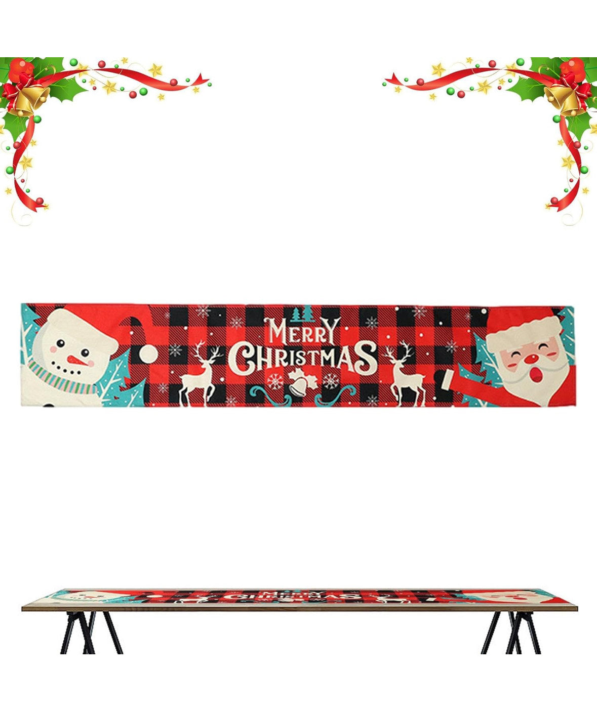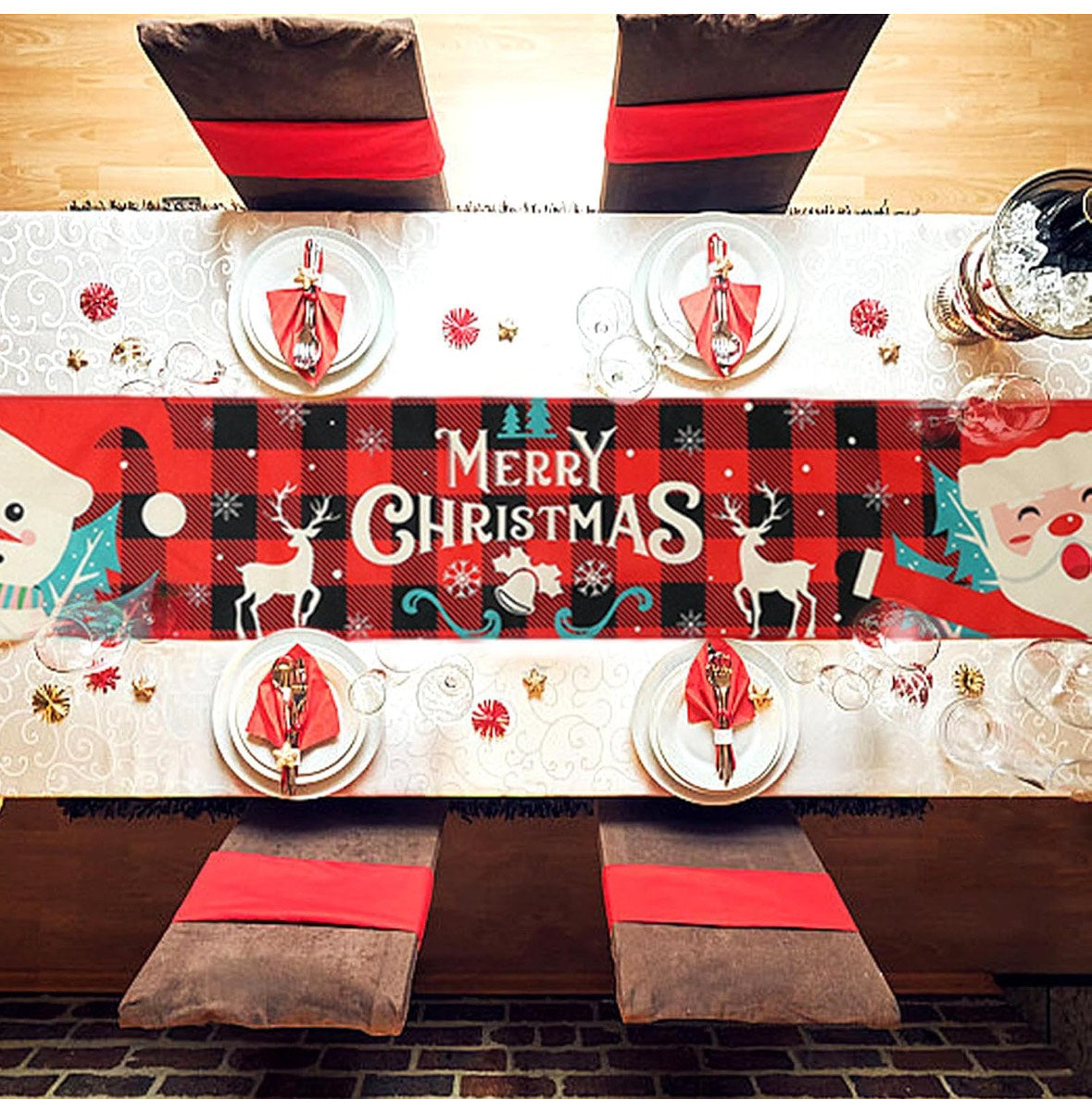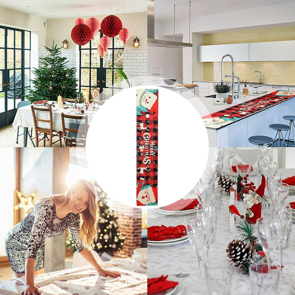 Vneste do svého domova vánoční atmosféru s touto sezónní vánoční ubrusovou a běhounovou sadou, ideální pro slavnostní výzdobu kuchyně nebo jídelny.